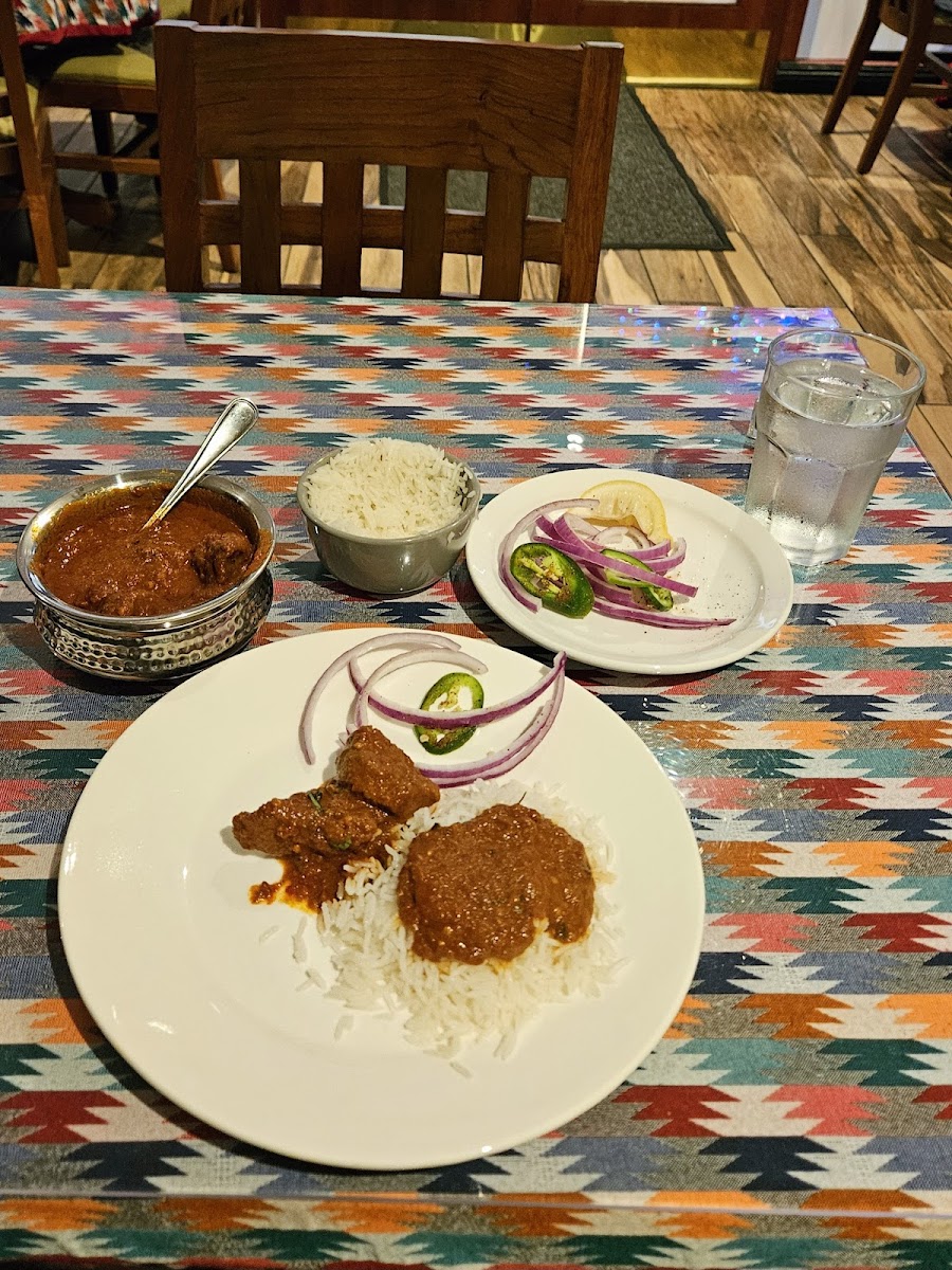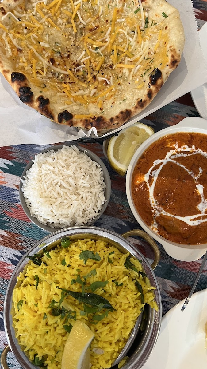 This was the second ever authentic Indian place I have been to, the first was SpiceUp on S King st, however due to their limited hours, I decided to try this place out. The wait felt quite long as I was starving, but that usually indicates the quality and popularity of a restaurant, which withstood with my experience. Nothing stood out regarding the service, my water wasn't refilled as constantly as I had hoped, which had me resort to drinking the water of the person I was dining with and even to the point of drinking from my own bottle of water. The ambiance was just like most restaurants, with the addition of the indian style decorations. One thing I would note is that I didn't notice music playing, which felt weirdly quiet? Or at least during moments of silence, it felt off. To the food though, it was delicious. I wanted to try pani puri and I wasn't disappointed. I loved the sauce (in the bottle), I just wished that maybe I was able to get uses out of the sauce because it was taken away right after we finished pani puris. The naan was DELICIOUS, i LOVE naan so much, it is a necessity when I eat indian curry. I loved pairing it with my shrimp korma. It was delicious and extremely spicy (as I asked for it to be), the curry was thick and filled with spices and herbs. At last we got the Gulab Jamun as dessert, it was very good as well. I just didn't realize it was a whole fried dough ball soaked in syrup (fried flavor but lacked the textural touch). It was completely soft throughout, very sweet and buttery.
